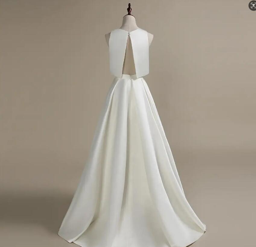 Two Pieces Wedding Dresses New Simple Cheap Wedding Gowns Real Photo Ruched Satin Bridal Gowns customized