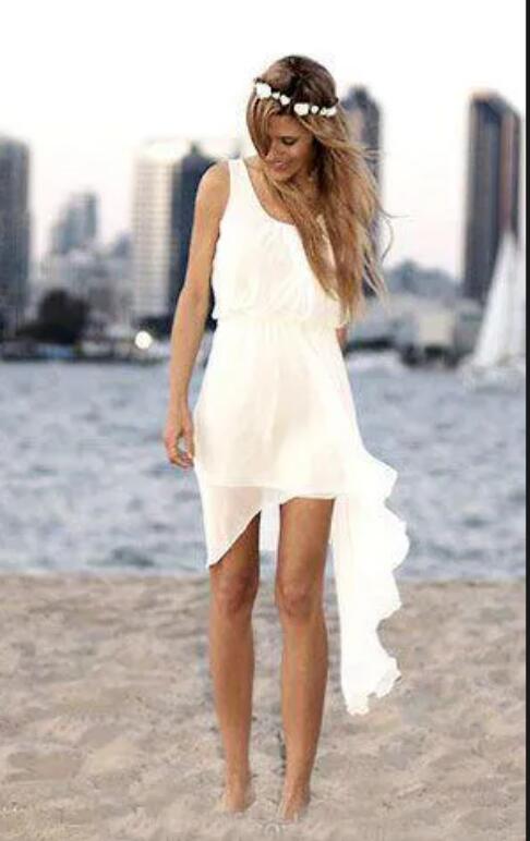 Short Beach Wedding Gowns Scoop Neckline Sleeveless Chiffon Bridesmaid Dresses Summer Boho Bridal Gown