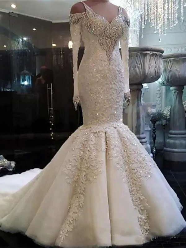 Modest Plus Size Mermaid Wedding Dresses Sweetheart Neck Lace Appliques Sweep Train Bridal Gowns Custom Made