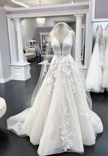 Elegant A Line Lace Appliques Wedding Dress Bridal Gowns