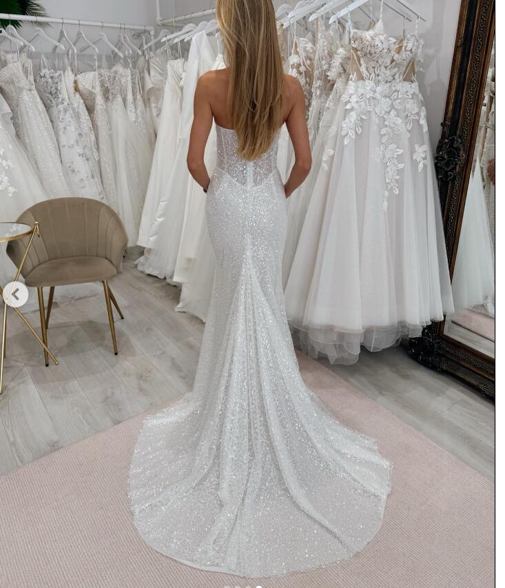 Elegant Mermaid Sequins Lace Beach Bohemia Wedding Dress Bridal Gowns Wedding Gown