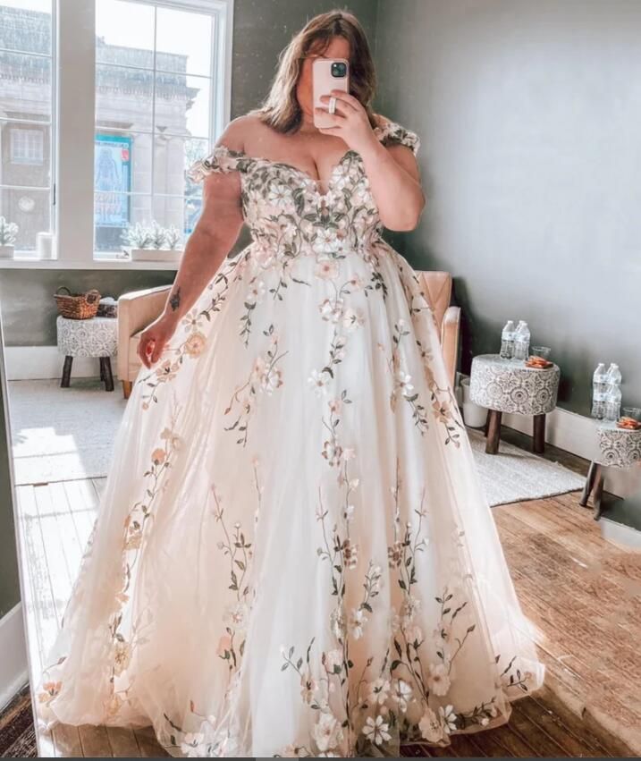 Plus Size Ball Gown Appliques Floral Wedding Dress Bridal Gowns Wedding Gown