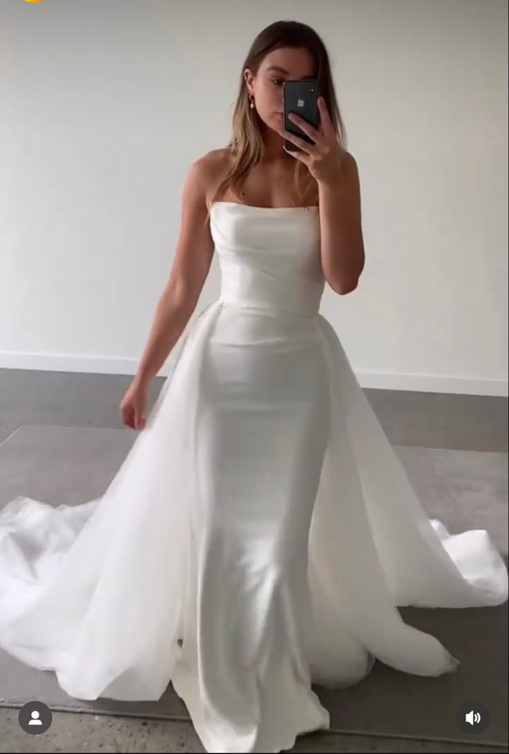 Simple Sheath Strapless with Detachable Train Beach Behomia Wedding Dress Bridal Gowns Wedding Gown