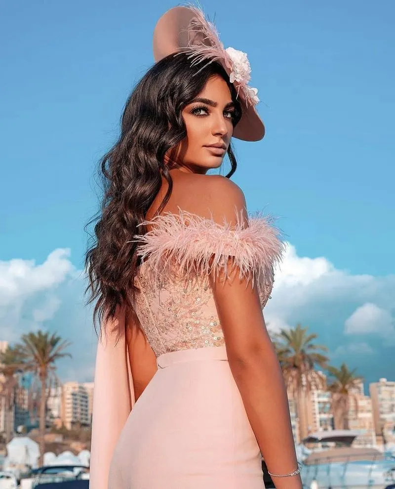 Pink Feather Jumpsuits Prom Dress One Shoulder Sequined Beaded Floor Length Formal Dresses Evening Party Wear Gowns