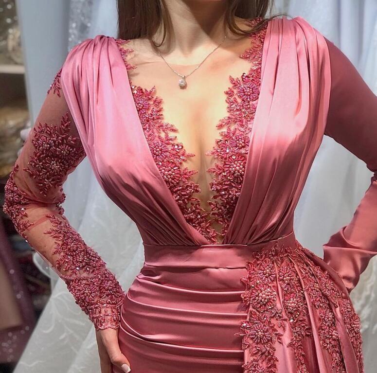 Plus Size Arabic Aso Ebi Lace Beaded Mermaid Prom Dresses Sheer Neck Long Sleeves Evening Formal Party Second Reception Gowns Dress