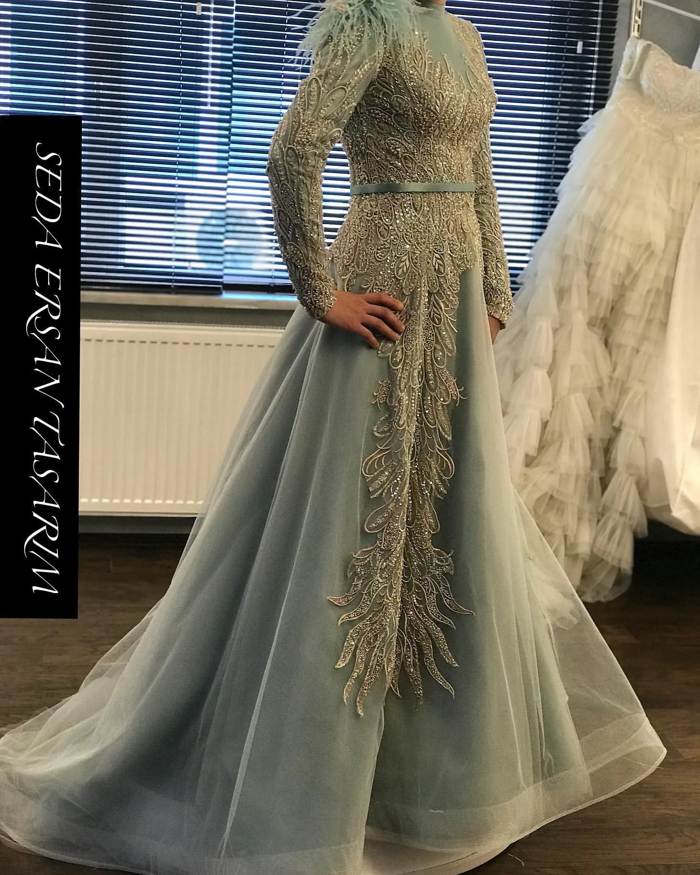 Arabic Muslim Lace Evening Dresses Lace Beaded Prom Dresses Long Sleeves Sexy Formal Party Bridesmaid Pageant Gowns