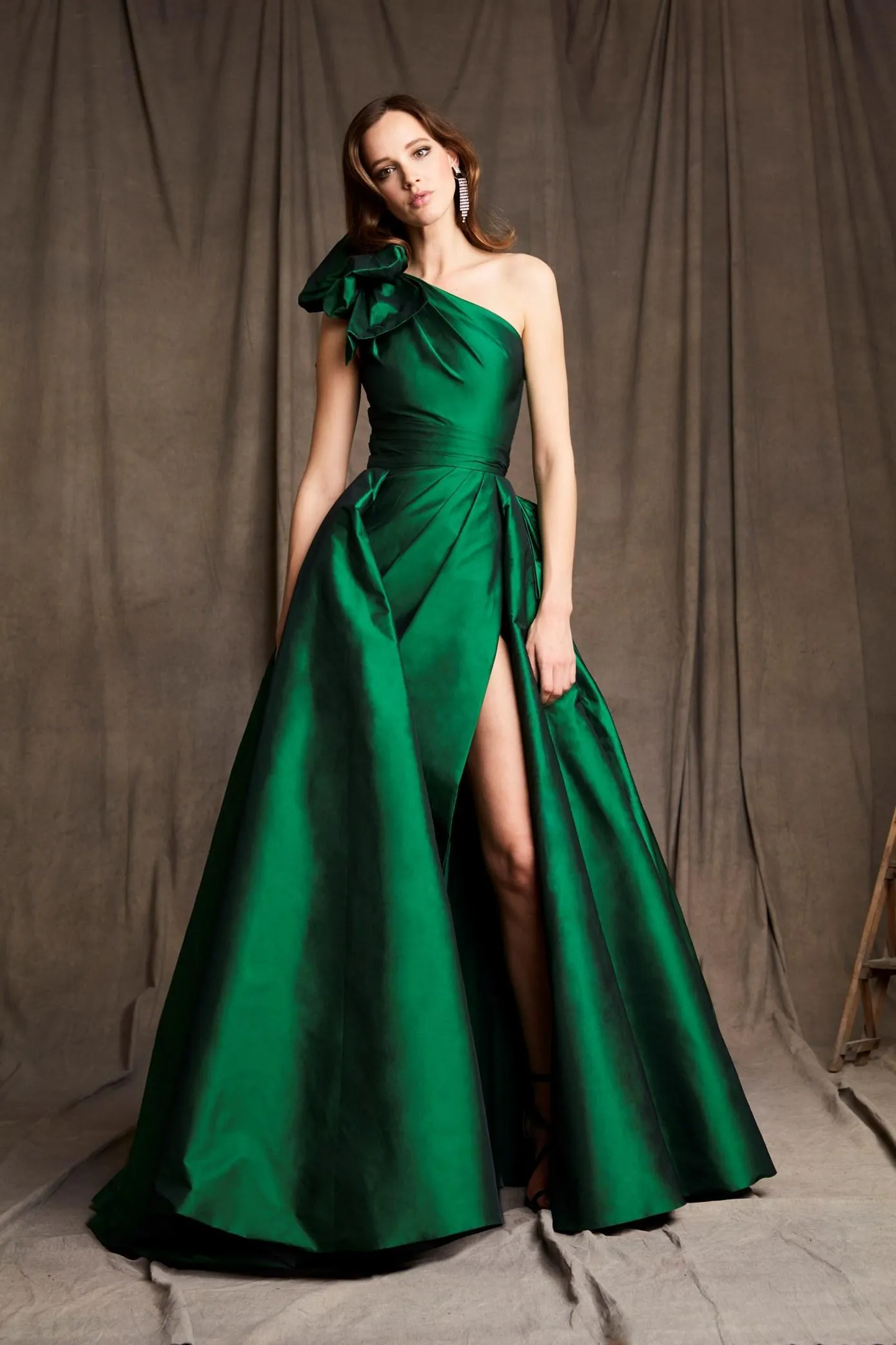 Prom Dresses One Shoulder Neckline Side Split Evening Gowns Overskirt Pleated Satin Special Occasion Formal Wear