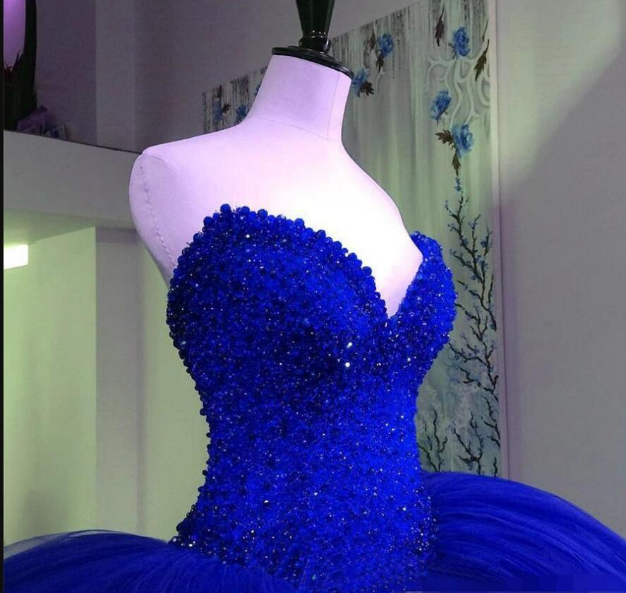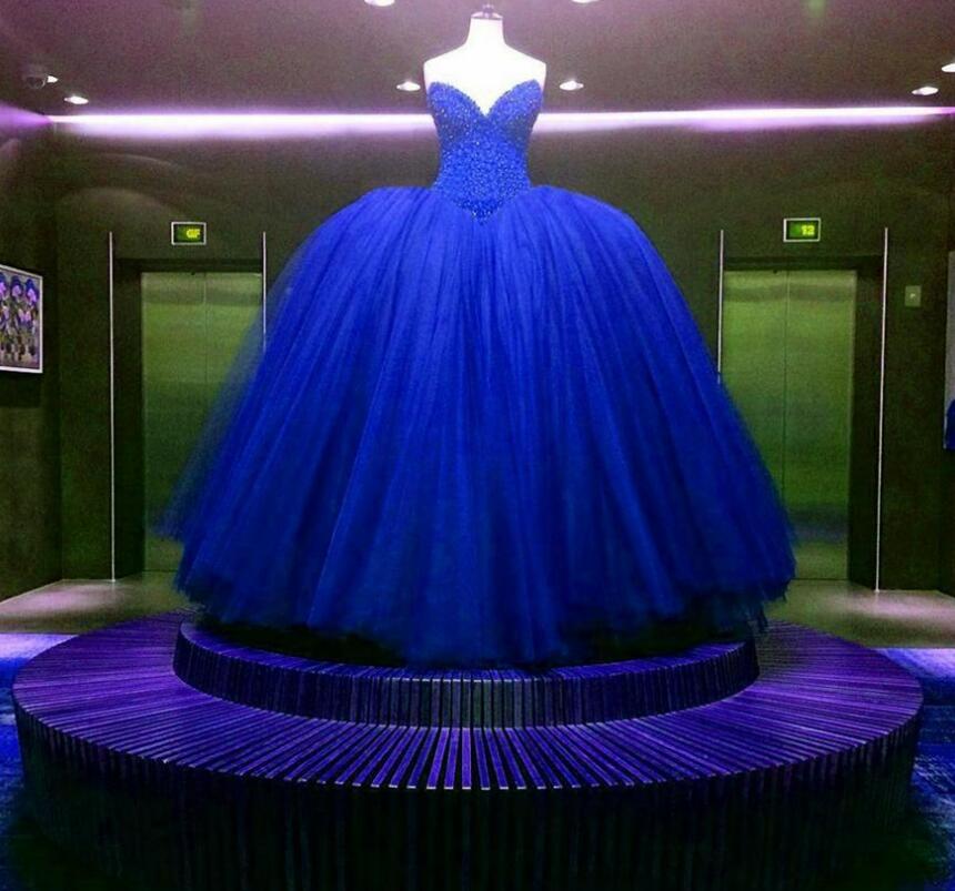 Luxury Beaded Ballgown Prom Dresses Royal Blue Sweetheart Neckline Tulle 2019 Burgundy Floor Length Custom Made Evening Party Gown