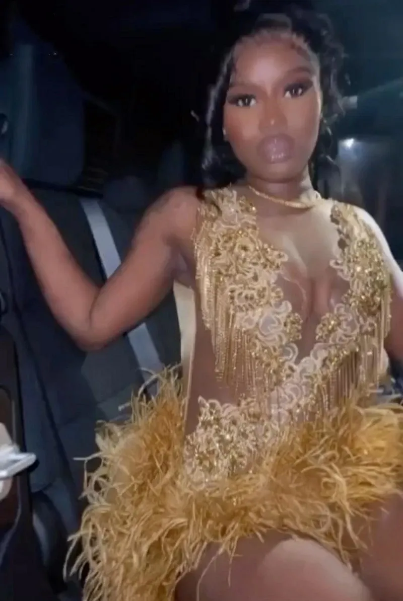 Gold Lace Short Prom Dresses For Black Girls 2023 Cocktail Dresses Applique Beading Feathers Tassel Crystal Women Birthday Party Dress