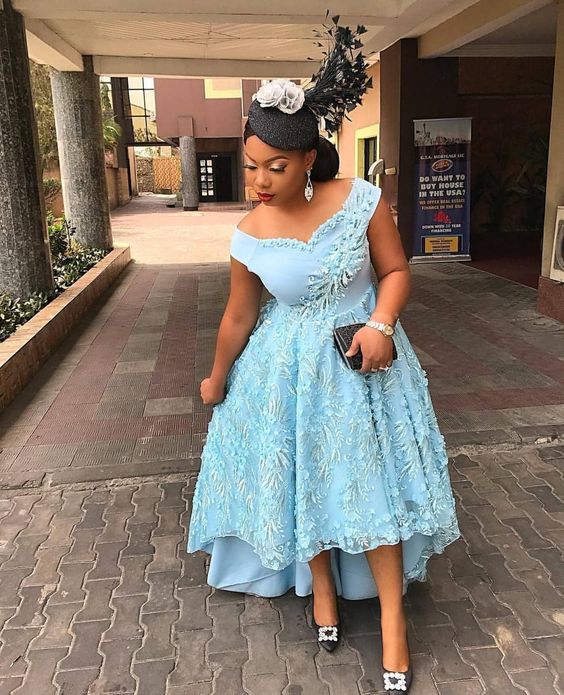 Blue Lace Appliques African Prom Dress Evening Dress