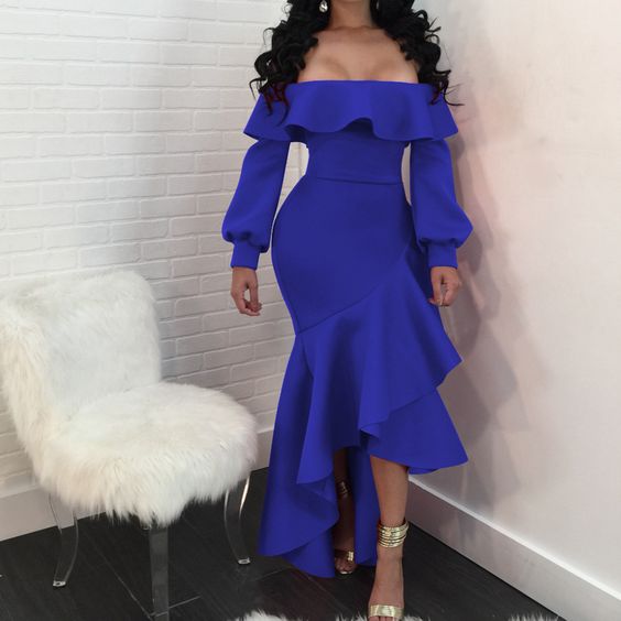 Royal Blue Mermaid Long Sleeve Prom Dress Evening Gowns