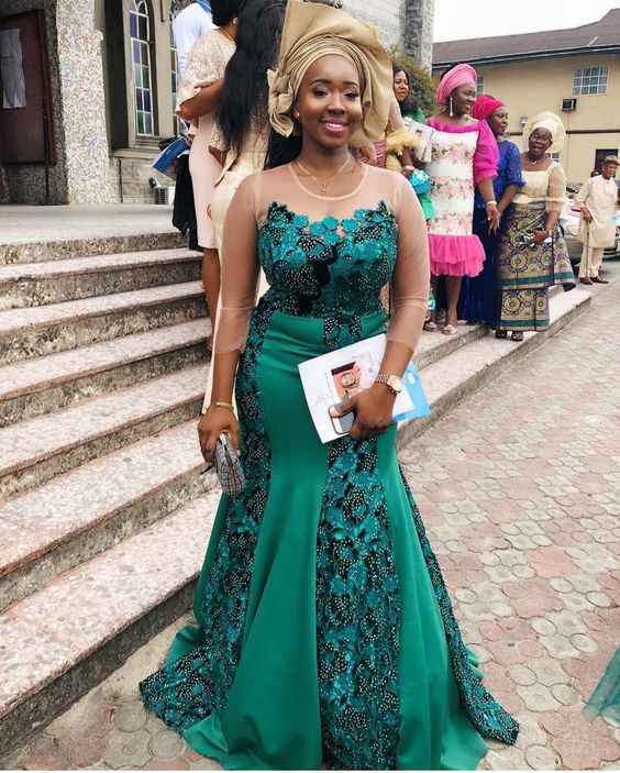 Emerald Green Mermaid Beading Lace African Prom Dress Evening Gowns
