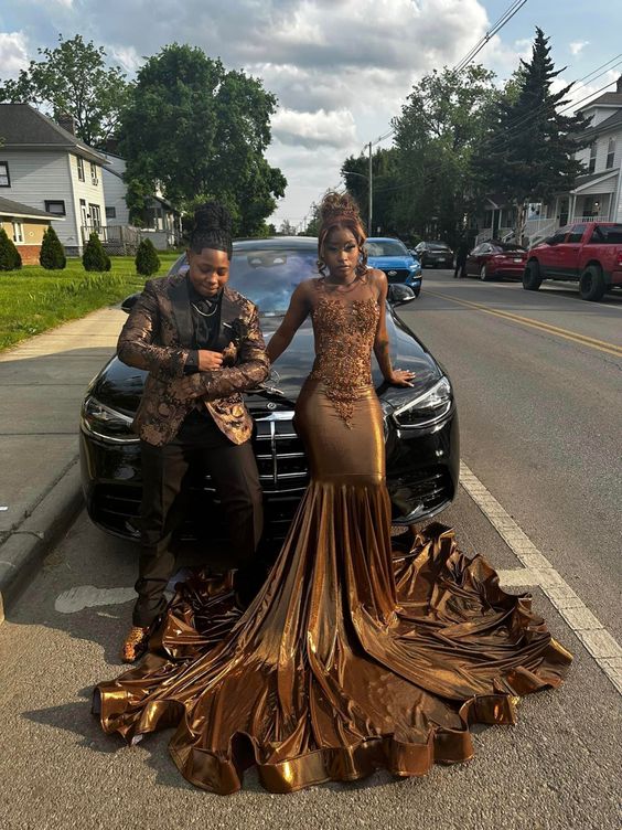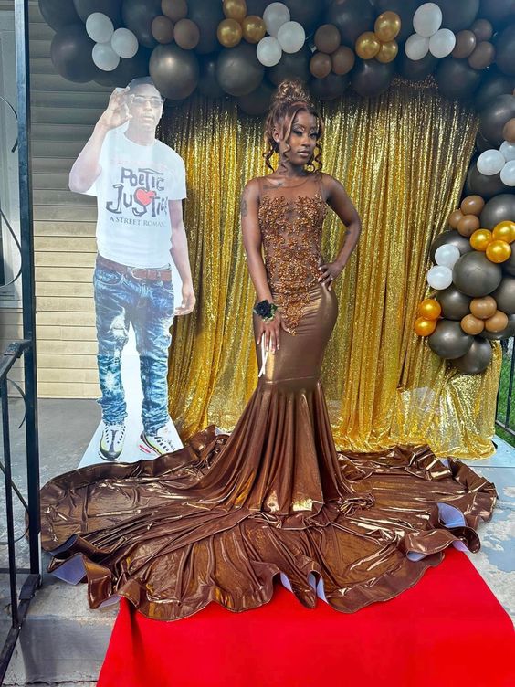 Mermaid Brown Lace Appliques African Prom Dress Evening Gowns