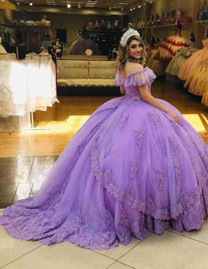 vestidos de 15 años Light Purple Quinceanera Dresses Short Sleeves V-neck Lace Beads Sequins Backless Sweet 16 Dress Ball Gown Prom