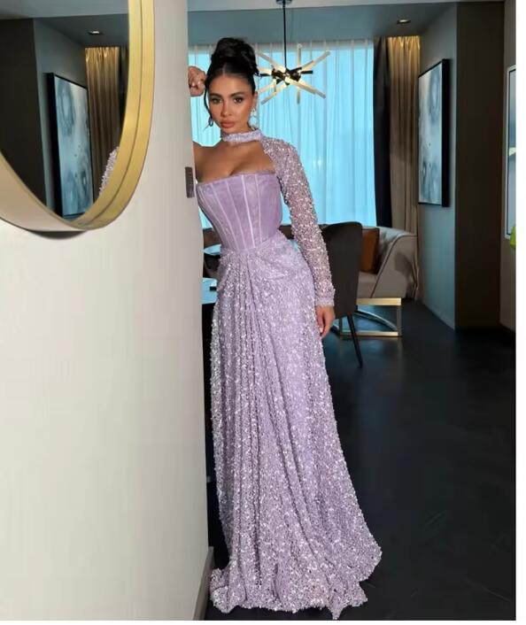 One Shoulder Floor-length A-line Prom Dresses Elegant Purple Simple Formal Evening Dress