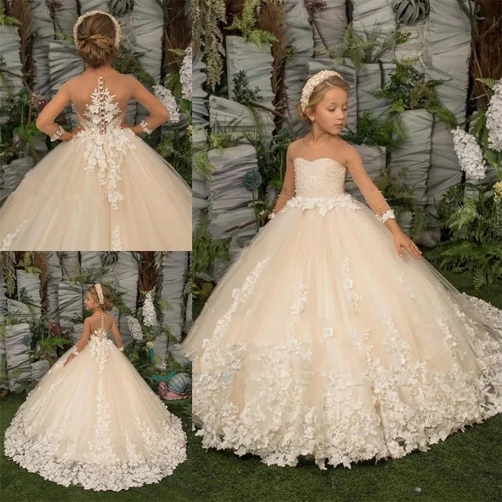 Flower Girls Dresses Vintage Gown with Bow Kids Girl Wedding Party First Communion Ball