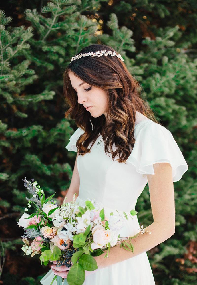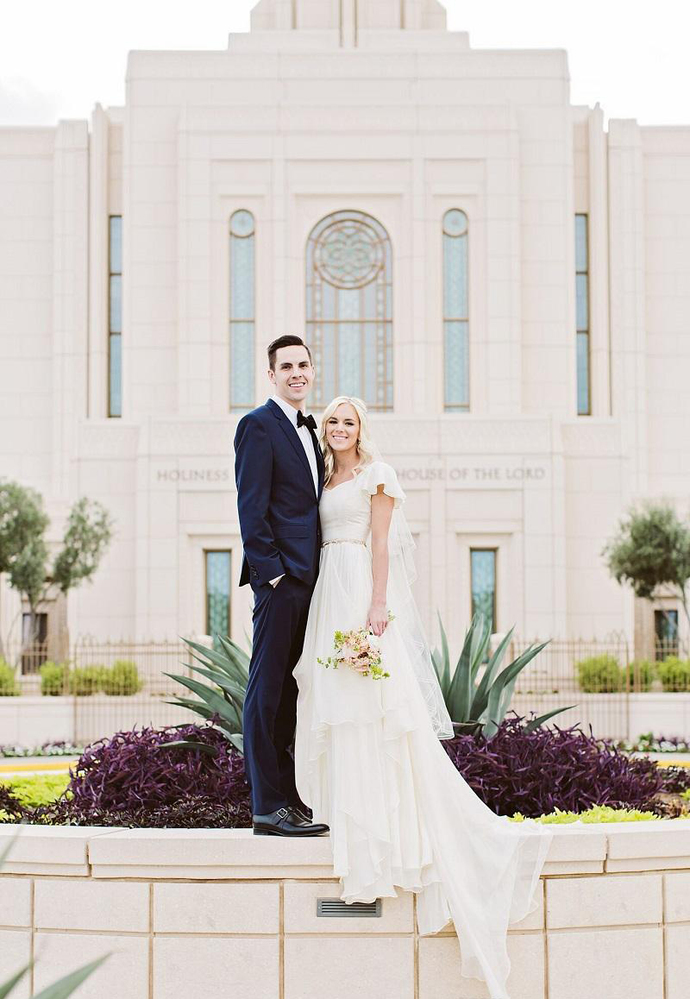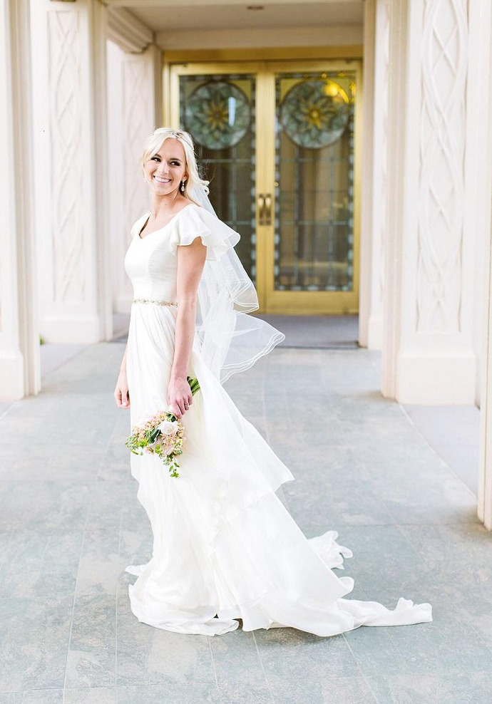 Flowy Chiffon Modest Wedding Dresses 2025 Beach Short Sleeves Beaded Belt Temple Bridal Gowns Queen Anne Neck Informal Reception Dress