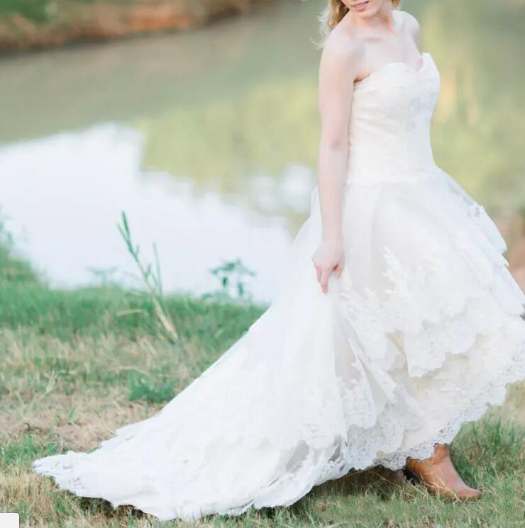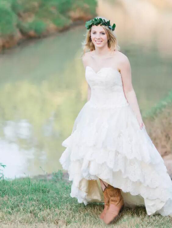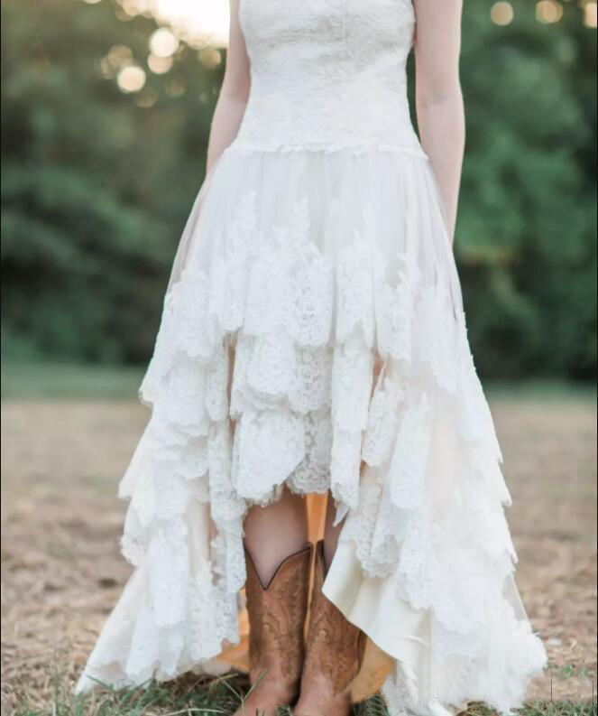 Lace High Low Country Wedding Dresses Plus Size with Tiered Skirt and Lace Up Back Real Bridal Gowns Handmade vestidos de novia