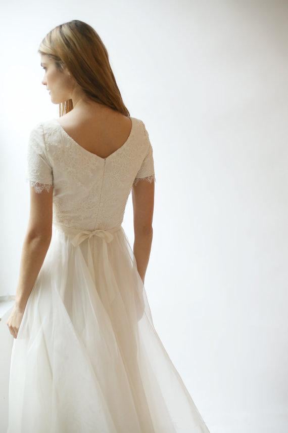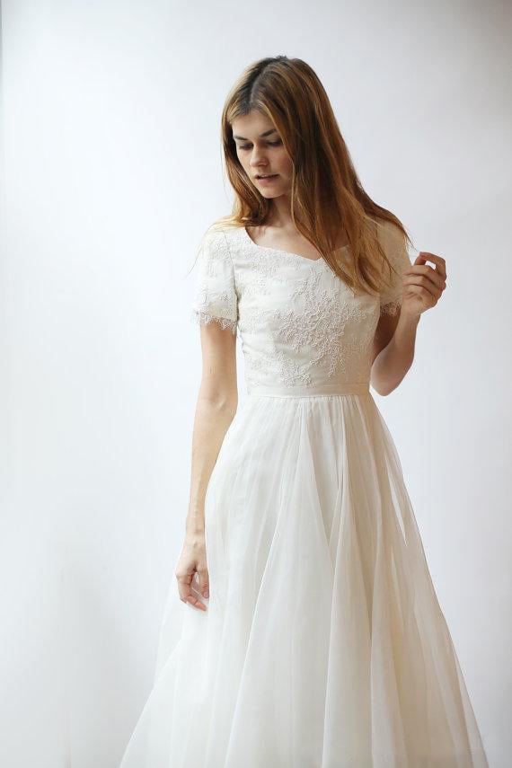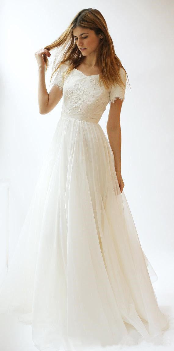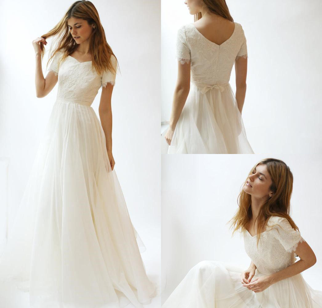 Modest Simple Beach Wedding Dresses 2025 A Line Lace Appliqued Bridal Gowns Short Sleeve Plus Size Wedding Dress