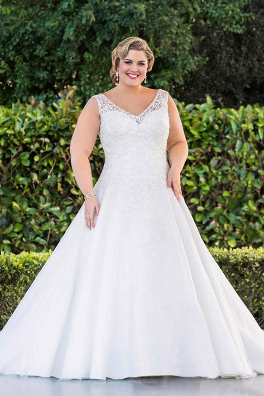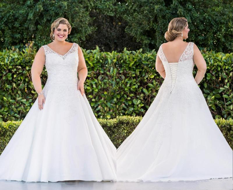 New Plus Size A Line Lace Wedding Dresses V Neck New Elegant Long Princess Bridal Gowns Appliques High Quality Bandage Stunning