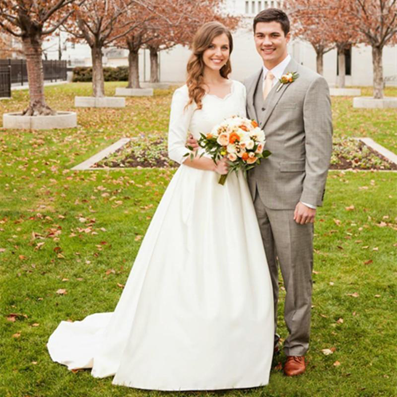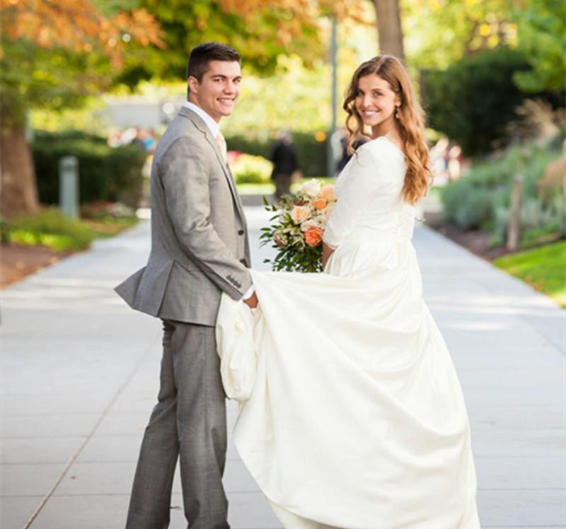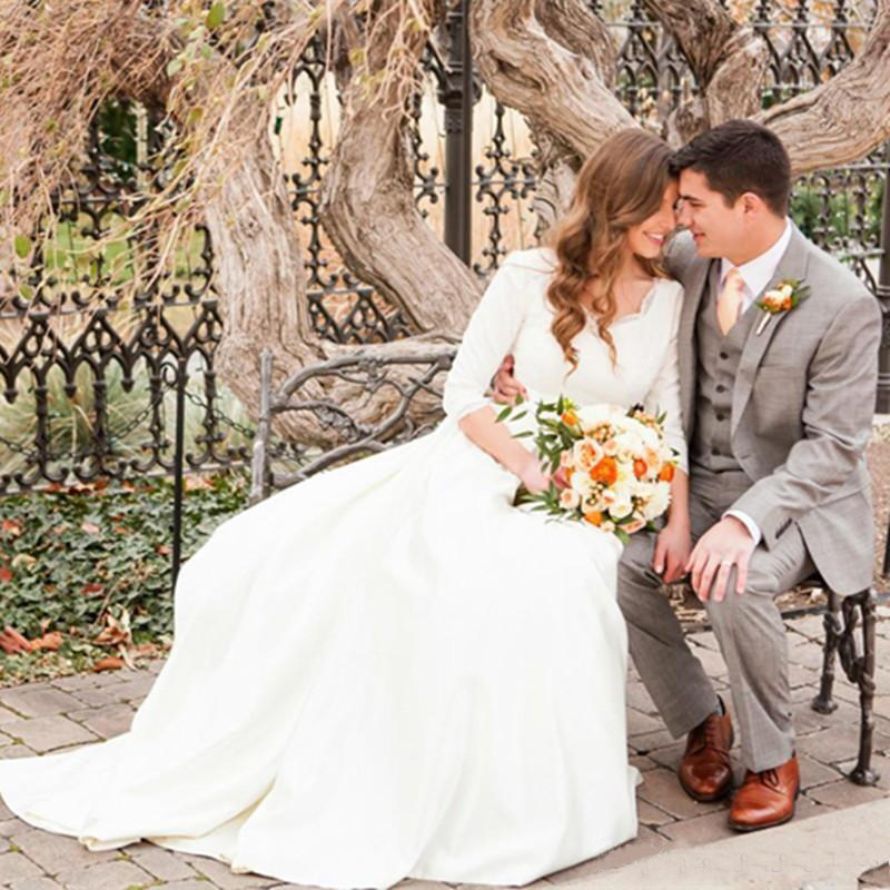New Vintage Wedding Dresses White Ivory Elegant V-Neck Sweep Train 3/4 Long Sleeve Classical Bridal Gowns
