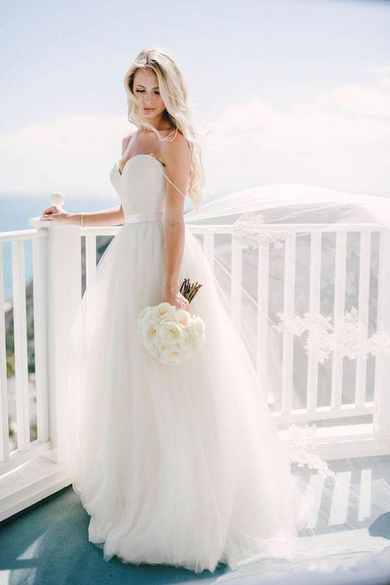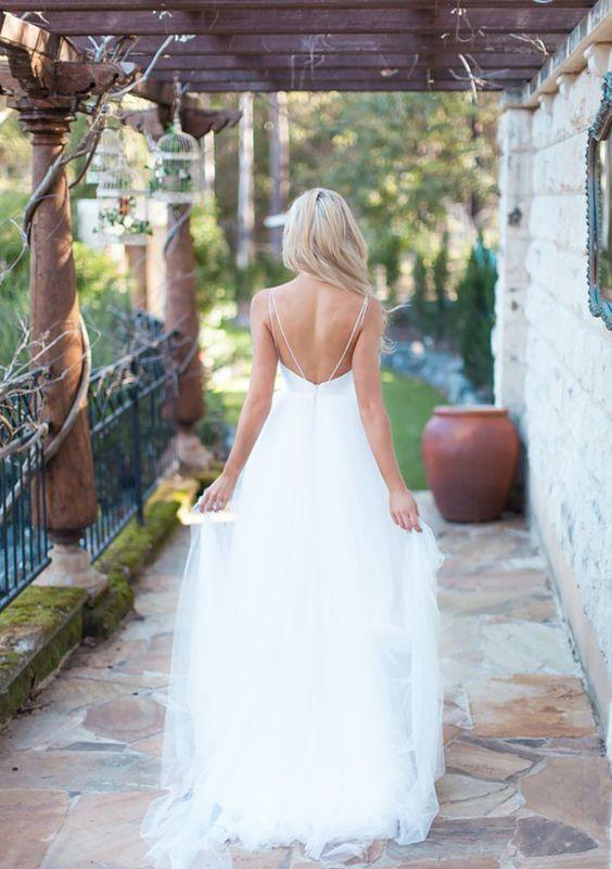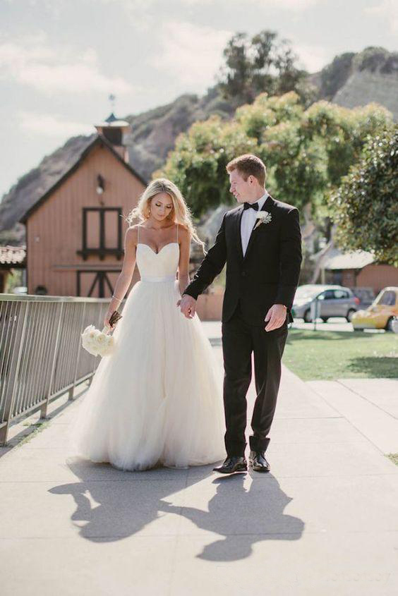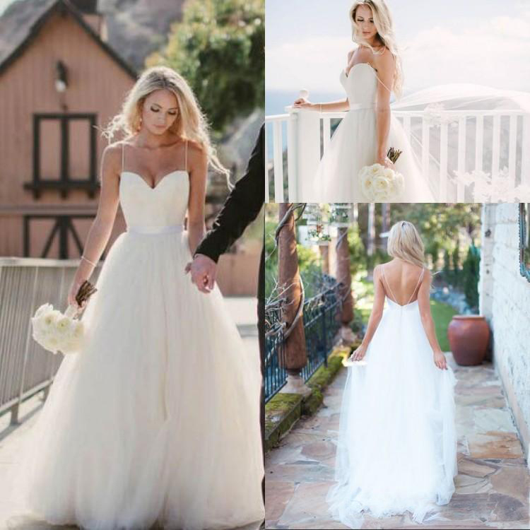 Vintage Ivory Spaghetti Straps Tulle Sweetheart Neckline Long Wedding Dresses Floor Length Backless Beach Bridal Gowns