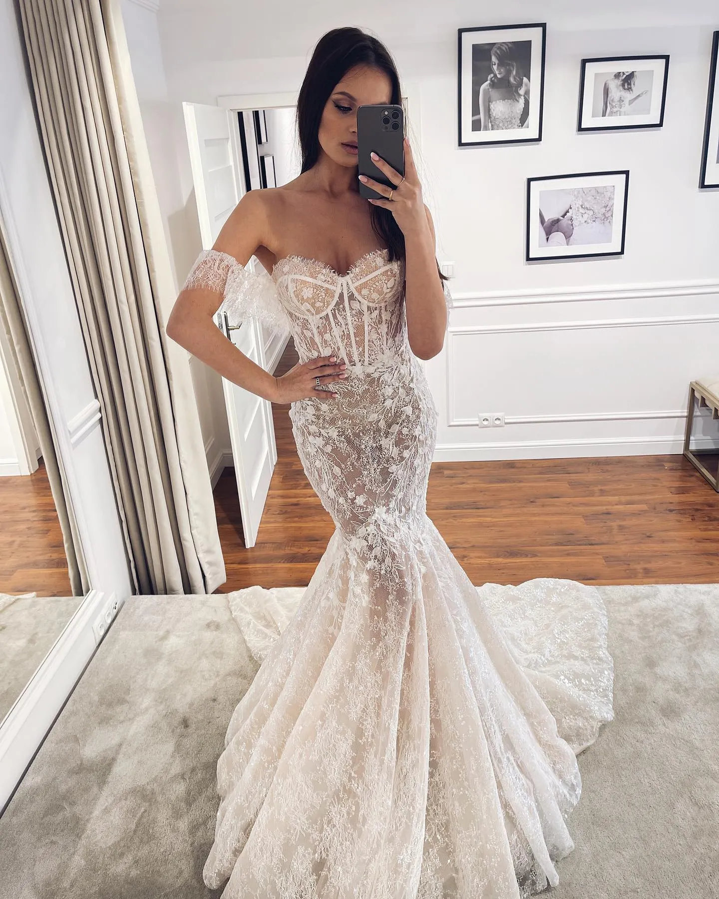 Sexy Mermaid Wedding Dresses Off Shoulder Sweetheart Lace Wedding Dress Sweep Train Appliques robe de mariee bridal gowns