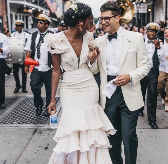Unique Mermaid Tiered Boho Beach Wedding Dress Bridal Gown