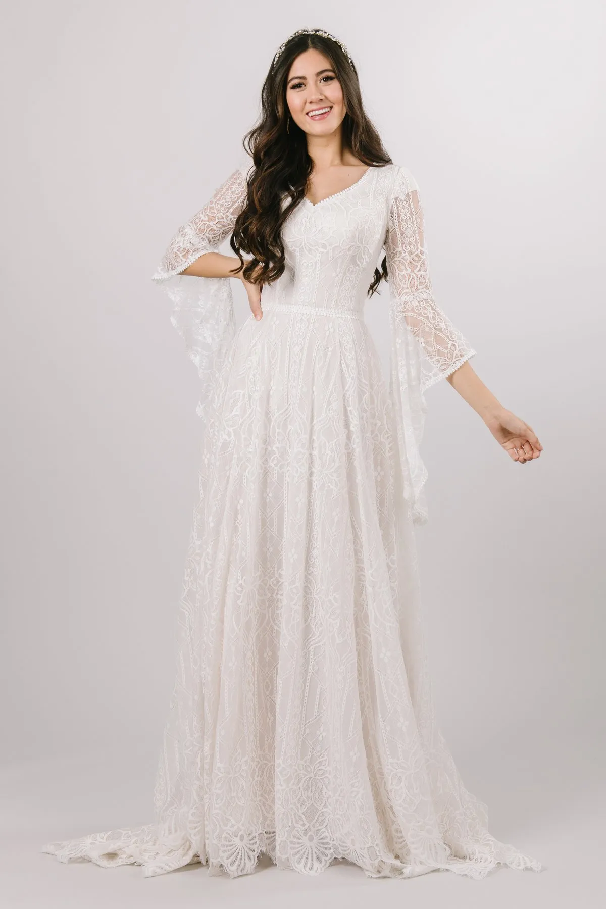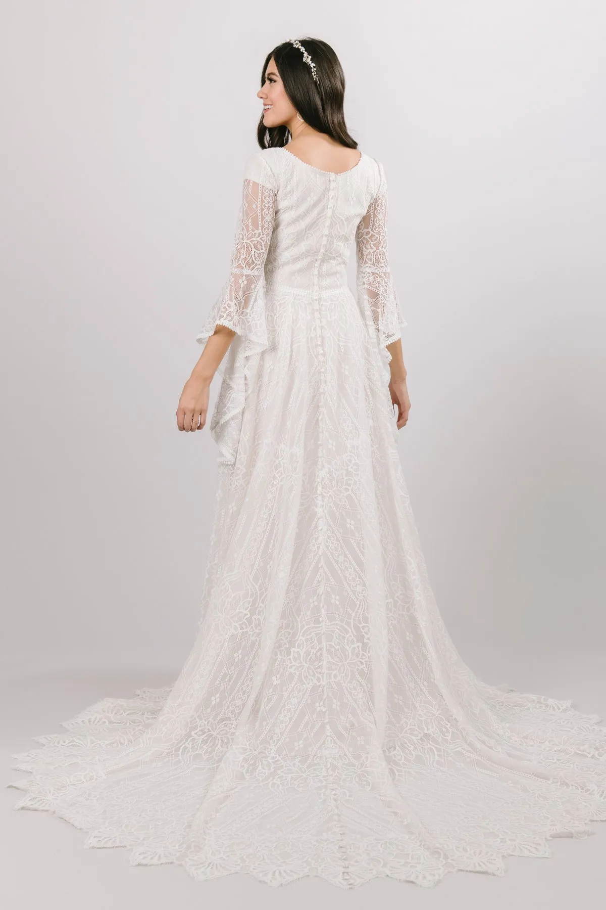 Vintage Lace Modest Wedding Dresses With Long Sleeves V Neck Simple A-line Boho Bridal Gowns Covered Buttons Temple Bridal Gowns Custom