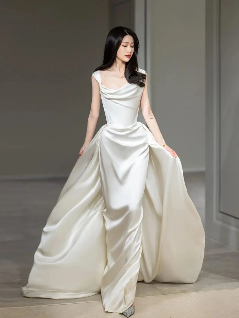 Wedding Dress Mermaid Satin For Bride Boat Neck Neckline Off The Shoulder Custom Made Plus Size