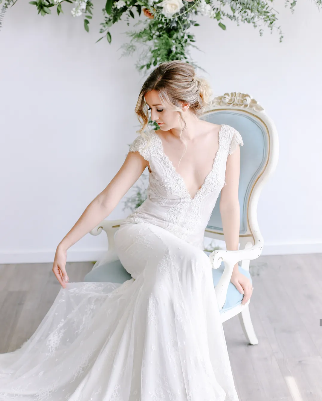 Summer Boho Wedding Dress Sexy Deep V Neck Full Lace Sweep Train Bridal Gowns Custom Made