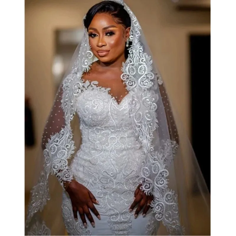 Mermaid Wedding Dresses Bridal Gown Beaded Lace Applique Long Sleeves Ruffles Chapel Train Custom Made Vestidos de novia Plus Size