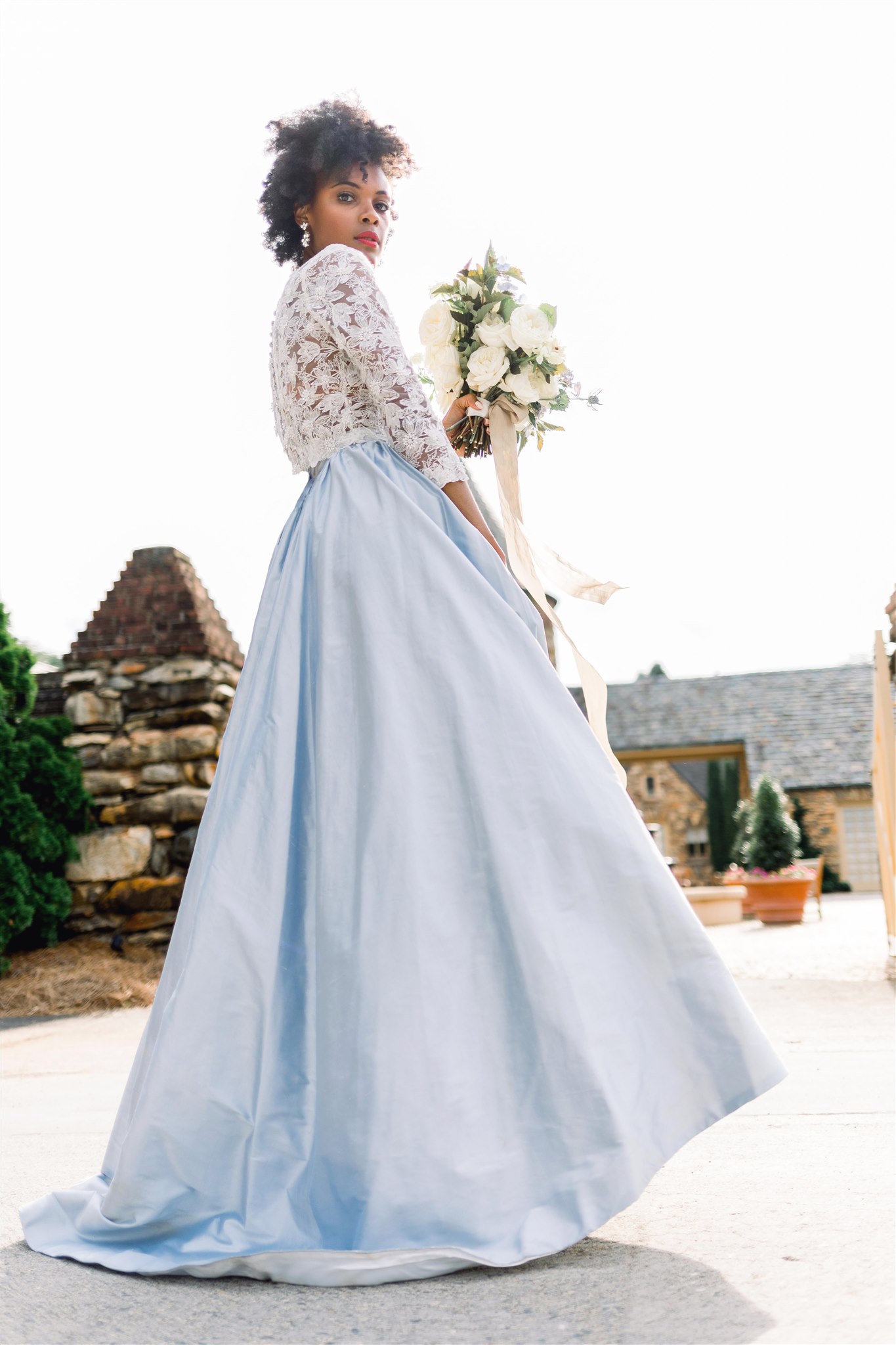 Simple Two Pieces Blue Boho Lace Wedding Dress Bridal Dresses