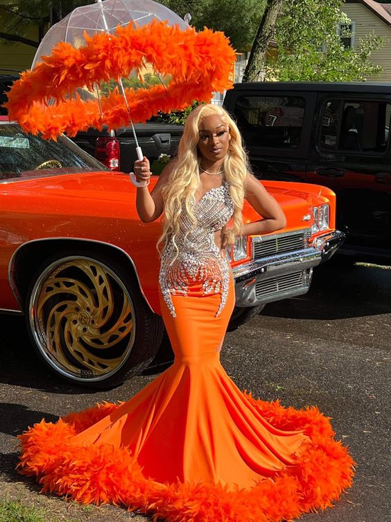 Orange Mermaid African Girl Prom Dresses Evening Dress