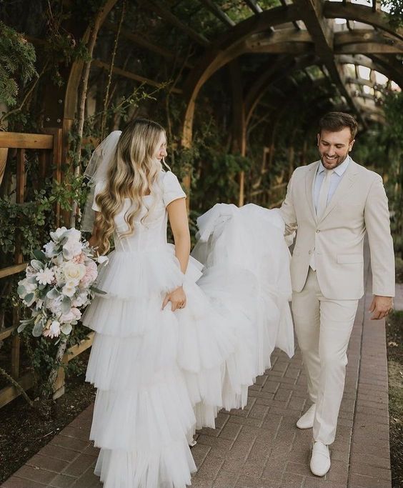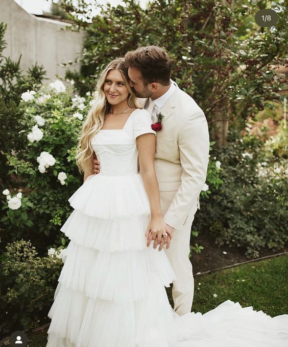 Ball Gown Tiered Wedding Dresses Train Bridal Dress