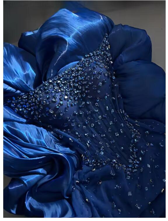 Customized Sapphire Blue Mermaid Illusion Prom Dress Rhinestones Strapless Vestidos De Noche Floor-Length Formal Evening